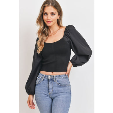 Poppin' in Poplin Sleeves Semi-Crop Sweater