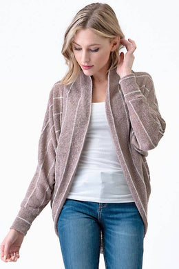 Mocha Latte Lightweight Striped Scoop Long Sleeve Cardigan