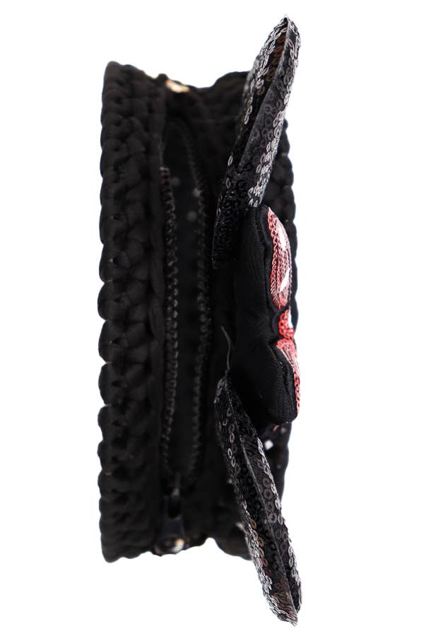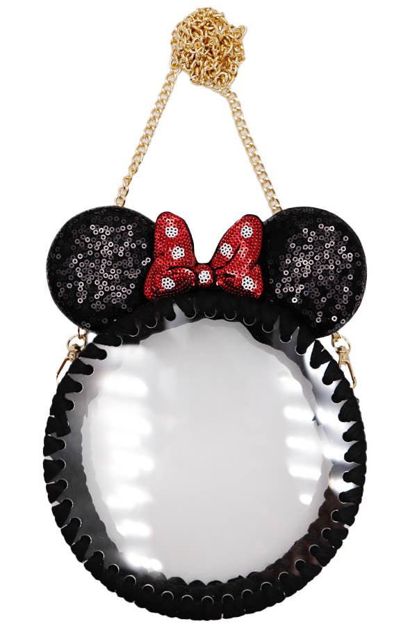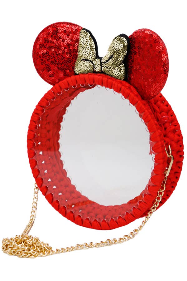 Ear Bow Sequins Chunky Knit Woven Clear Acrylic Panel Gold Chain Purse Crossbody Bag