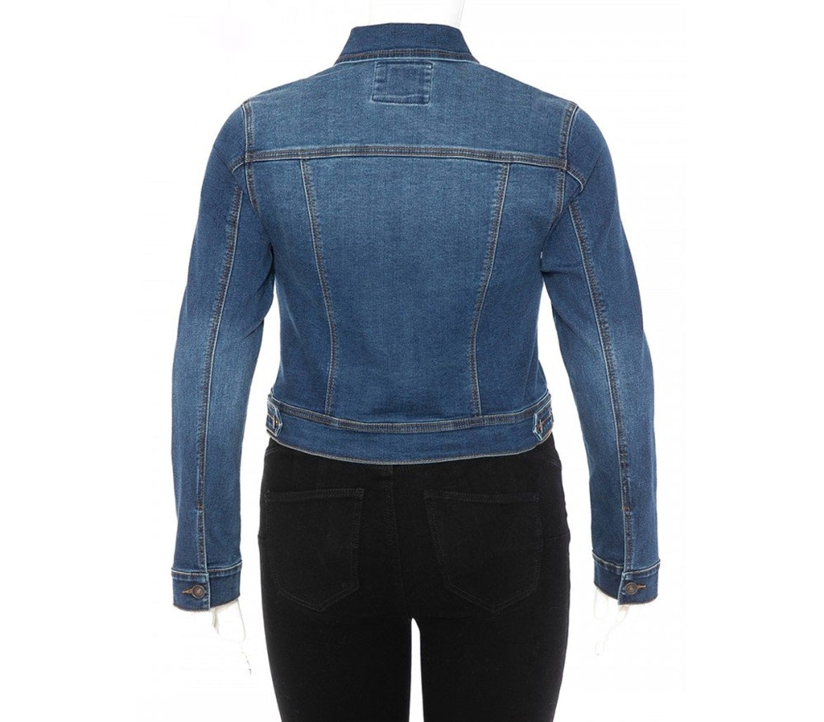 STONE WASHED BASIC DENIM JACKET Button front closure with two pockets